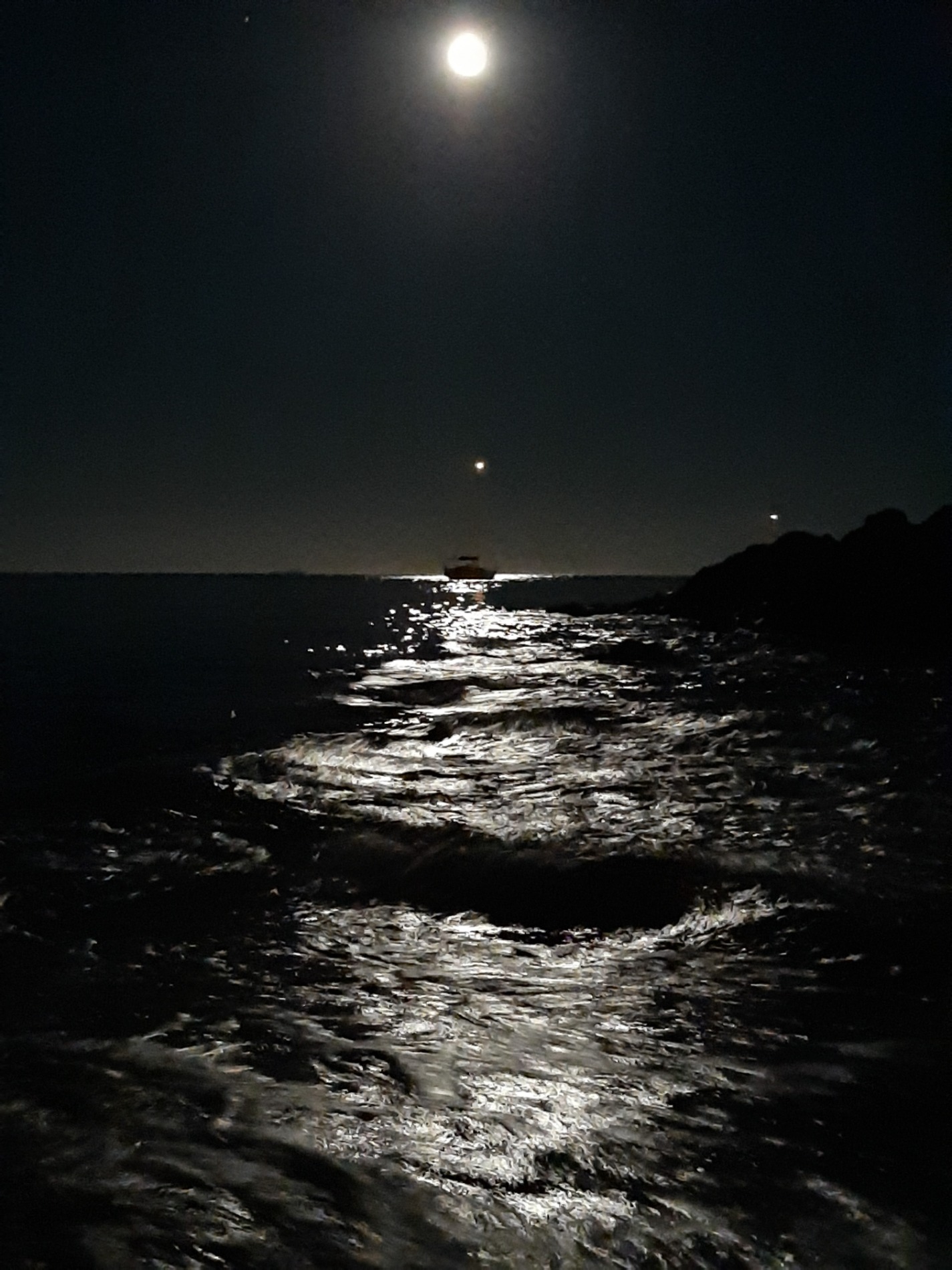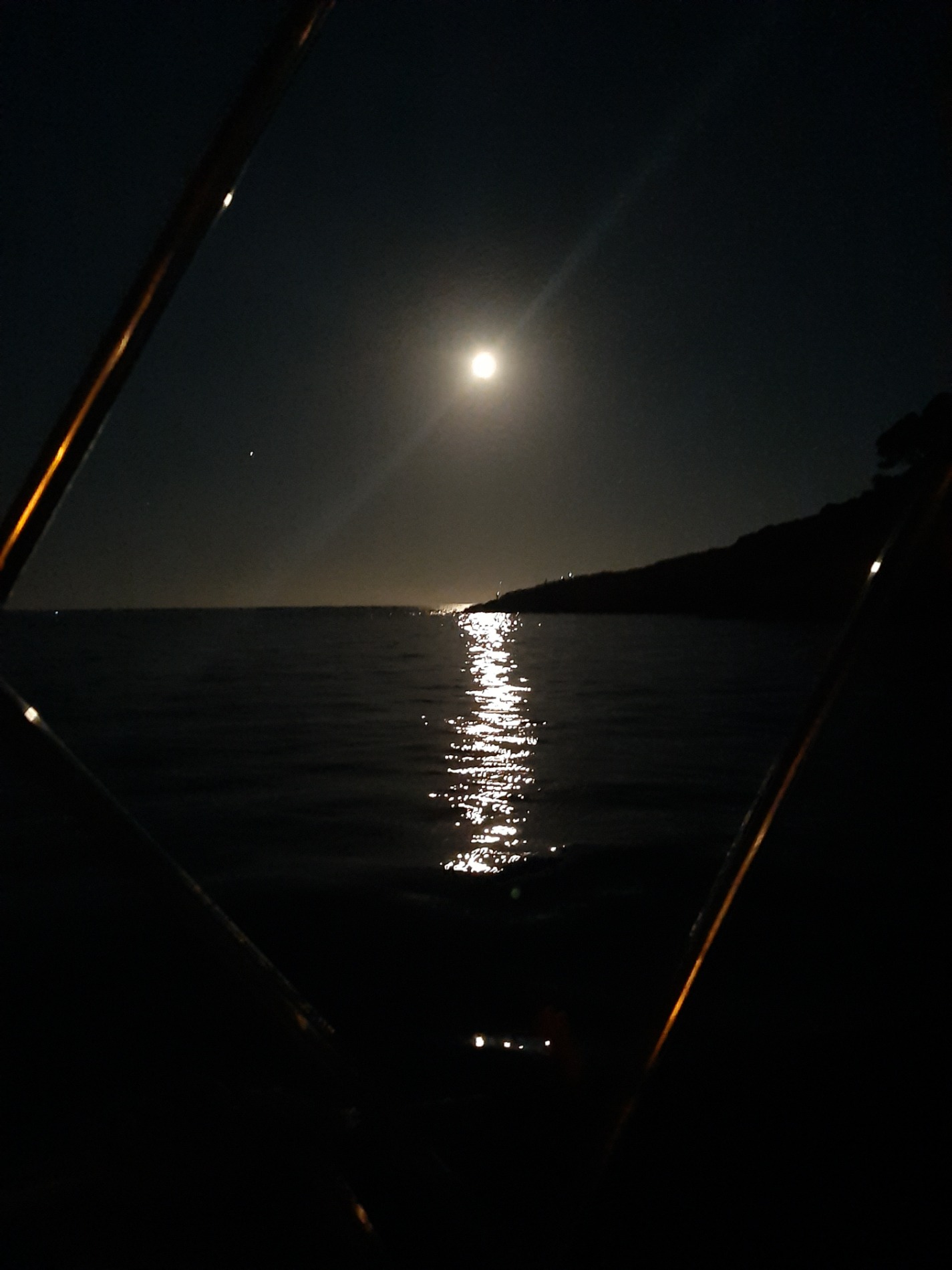 Salir al mar en las noches de Luna Llena tiene una magia especial, ver reflejada la Luna en el mar es fascinante y la sensación de paz que se respira sanadora.