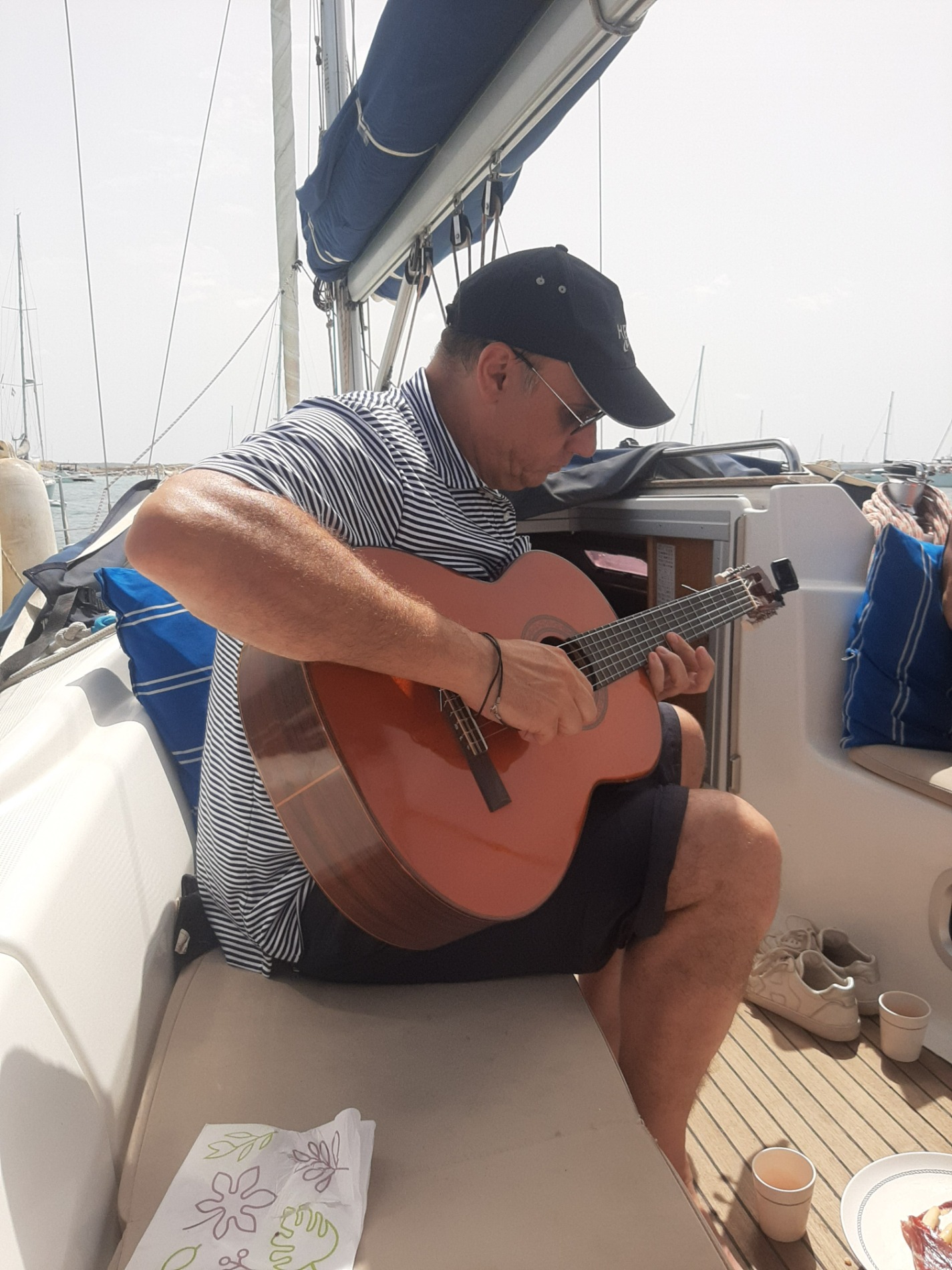 Tengo a bordo una guitarra, un ukelele y un Tam Drum (instrumento de percusión melódica) que te hechizarán, aunque por supuesto puedes traer tu propio instrumento.