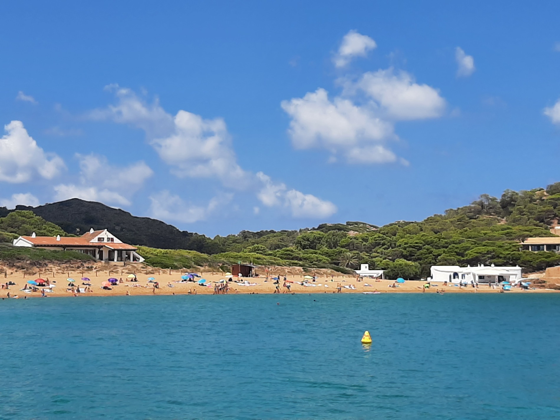- Arenal d’en Castell y Arenal de l’Olla de Son Saura: ambas son dos impresionantes conchas de fina y blanca arena de aguas cristalinas. Están urbanizadas, sobre todo Arenal d’en Castell y permite bajar a tierra a comer o comprar. Son muy cerradas y resguardadas del mar, por la noche es habitual dormir como si nos encontrásemos en una balsa de aceite. Desde Son Saura se puede ir caminando hasta Cala Pudent y es habitual cruzarse con cabras menorquinas.