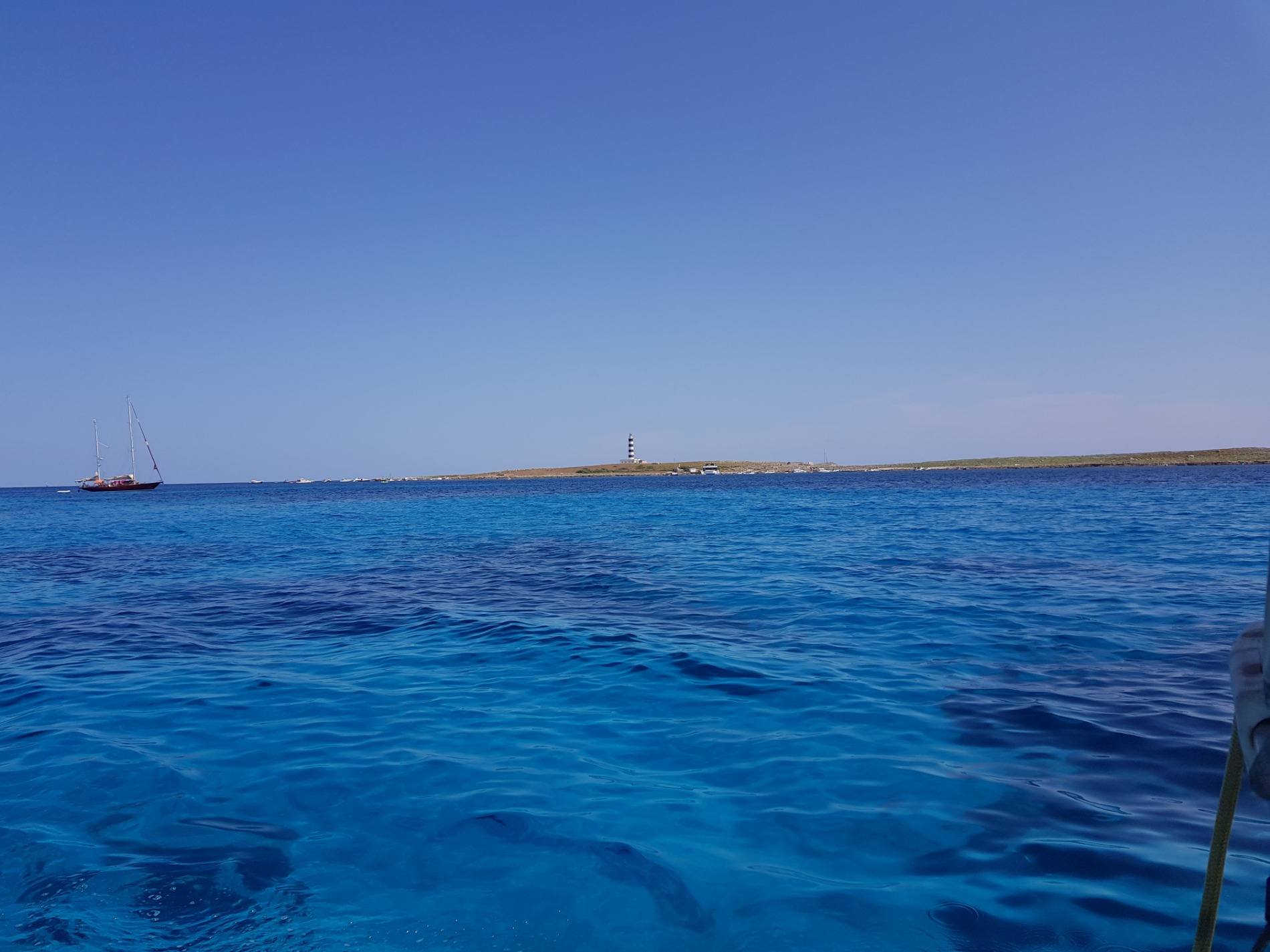 - Albufera d’Es Grau e Illa d’en Colom: La Albufera d’es Grau es el único Parque Natural de la Isla, cita ineludible para los amantes de las aves. Es Grau es un antiguo pueblo de pescadores ahora convertido en zona de veraneo y protegido por la Illa d’en Colom, el islote más grande de Menorca que tiene dos playas solo accesibles con padel surf o kayak. Es un bonito lugar de fondeo con boyas para preservar la poseidonia donde pasar una noche tranquila porque está muy protegida de todos los vientos excepto del Norte. Desde Illa Colom en apenas unas millas podemos visitar la Cala Presili o la Cala Tortuga antes de llegar, en mi opinión, al faro más bonito de la isla, Favaritx.