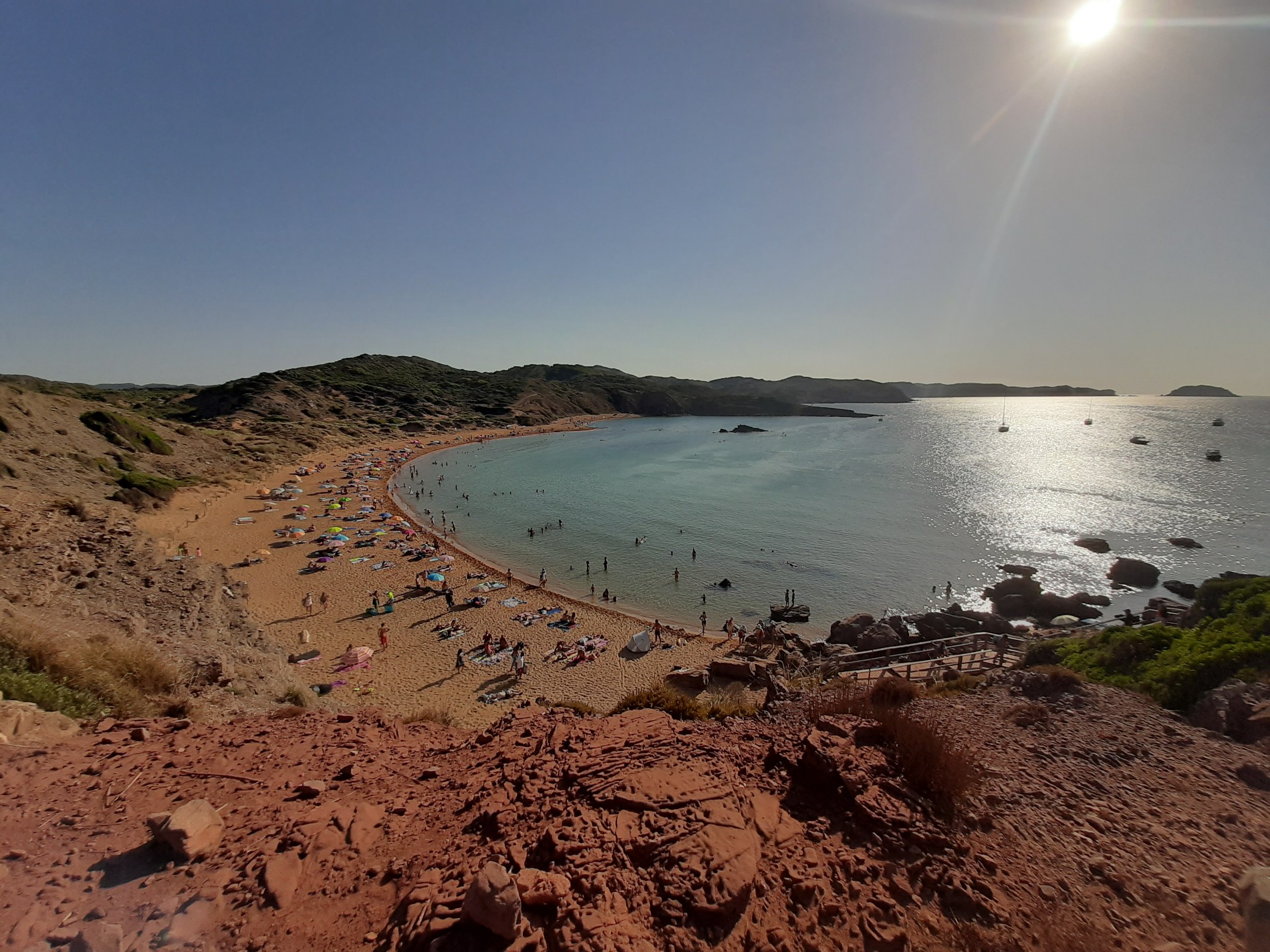 - Cala Pregonda: posiblemente una de las calas más bonitas de la isla. Resguardada entre dos macizos y con un islote que la protege tiene una playa de arena rojiza que en el amanecer resplandece. Su gran cantidad de arrecifes la convierte en un lugar precioso para hacer snorkel. Muy concurrida en verano pero aún así imprescindible.