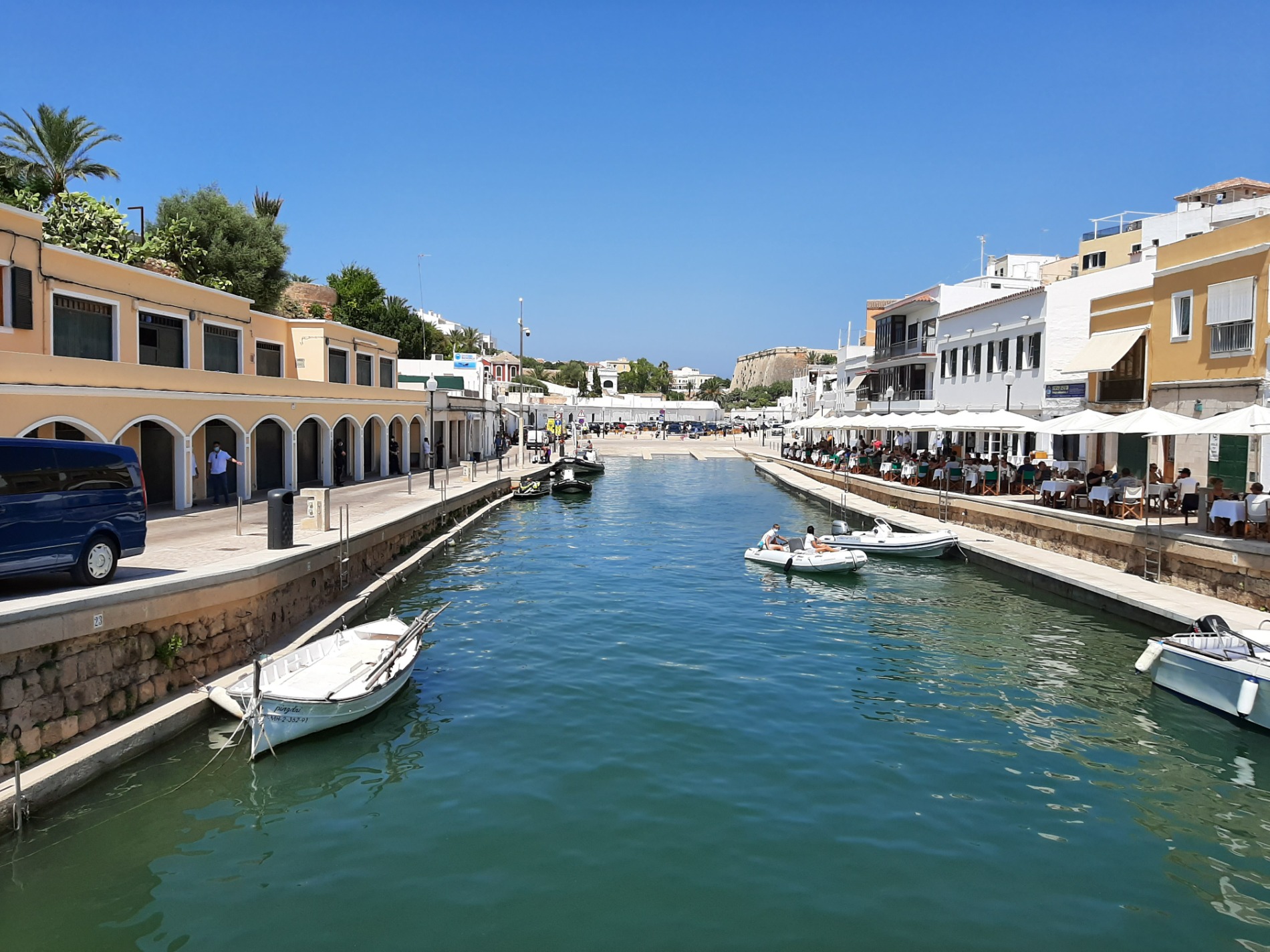 - Mahón: es la capital de Menorca y tiene el segundo puerto natural más grande de Europa, con sus casi 6km. de longitud es un espectáculo navegar por él y divisar el casco viejo en lo alto del acantilado. El casco histórico de Mahón ofrece muchos rincones y edificios singulares por descubrir, la mayoría de ellos de herencia inglesa fruto de su dominación en el S.XVIII. Imprescindible un paseo a lo largo del puerto y comer o cenar en alguna de sus terrazas.