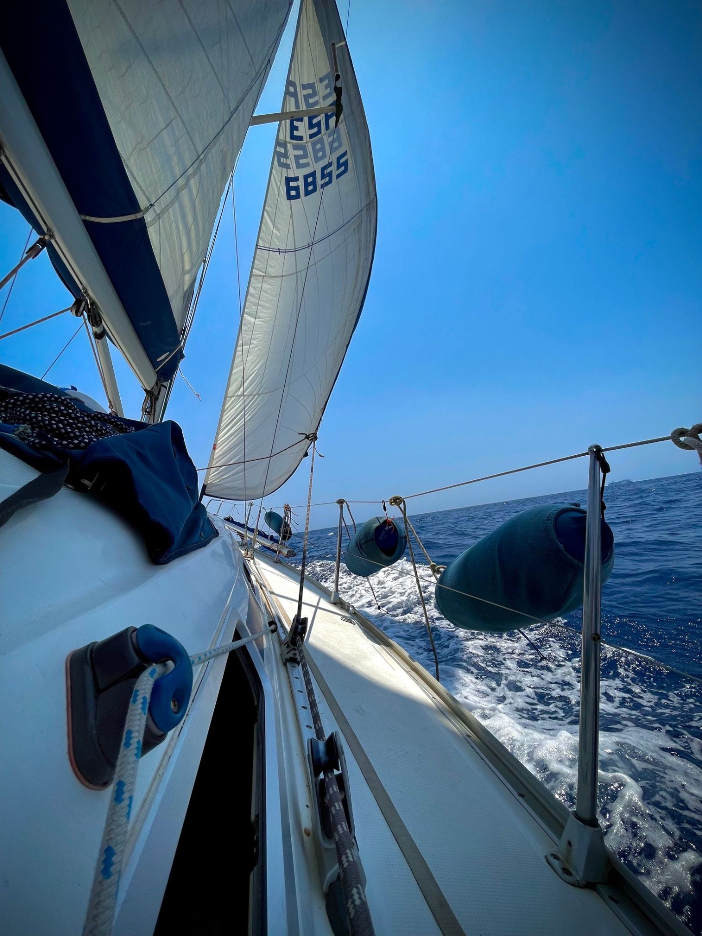 C'est un bateau confortable, robuste et bon marin. Dans sa grande et confortable baignoire, nous dégusterons de délicieux repas et de longues conversations, elle dispose également de haut-parleurs et d'un système musical auquel on peut se connecter via Bluetooth. Sur le tapis de proue, nous pouvons nous détendre, nous reposer, bronzer, méditer ou simplement observer l'horizon. Son intérieur, lumineux et très marin avec des finitions en bois, dispose de trois cabines doubles et d'une salle de bain parfaitement distribuée pour être confortable et à l'aise. Il dispose d'une cuisine, d'un four et d'un réfrigérateur, ainsi que d'un barbecue à gaz et d'un barbecue au charbon de bois au cas où nous voudrions cuisiner du poisson ou de la viande sur le pont.